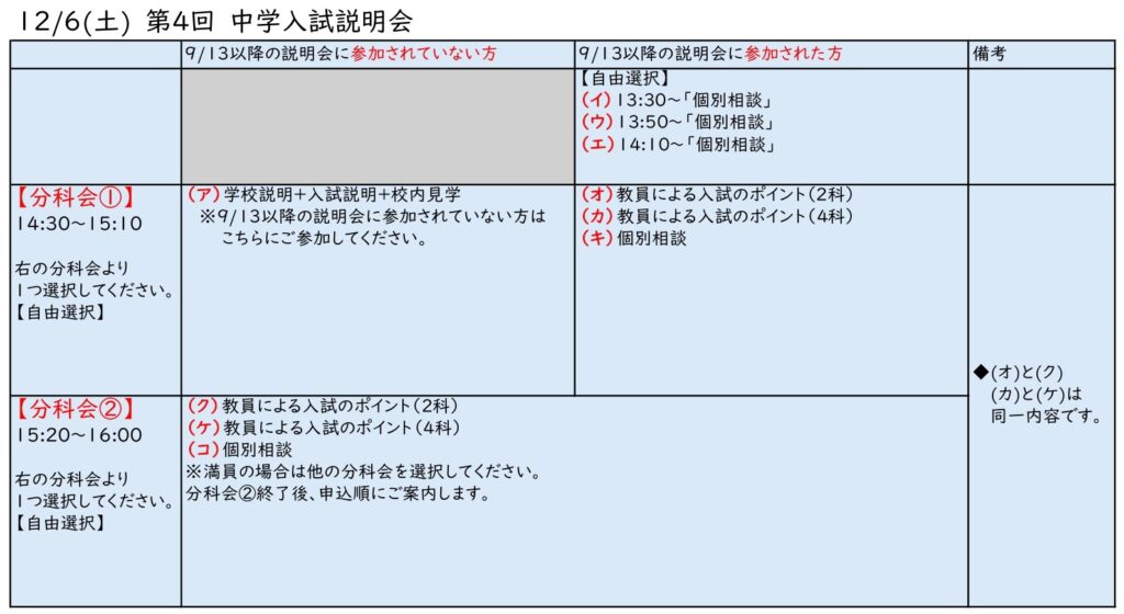 第4回中学入試説明会のお知らせ(12/6 土)